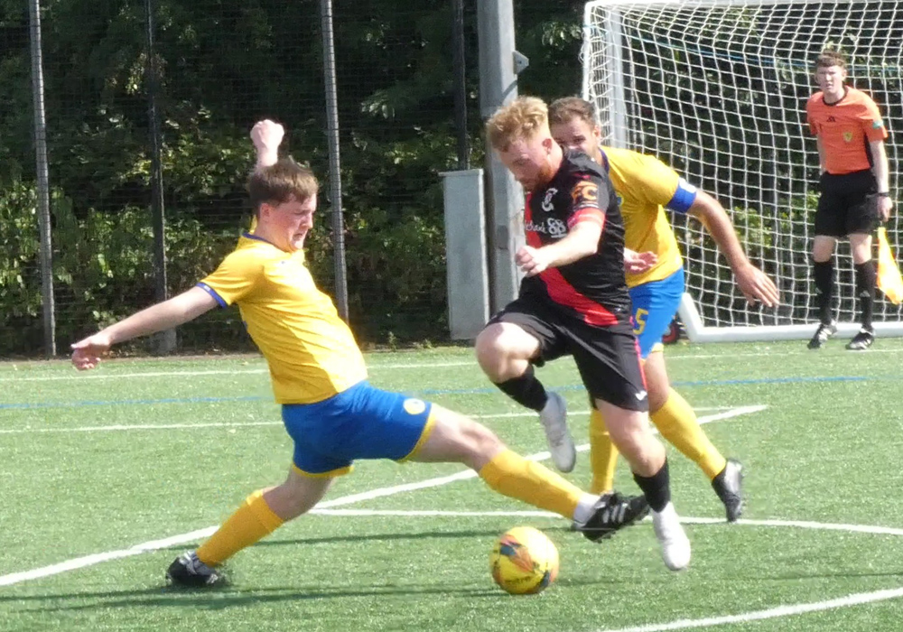 No time was wasted after the restart when David Syme headed home from a corner kick on his 50th appearance for the club. The seventh goal was added by Keir Samson who had only just come onto the pitch as he put away a Craig Truesdale through ball, and Aaron Black scored his second after being set up by Samson.