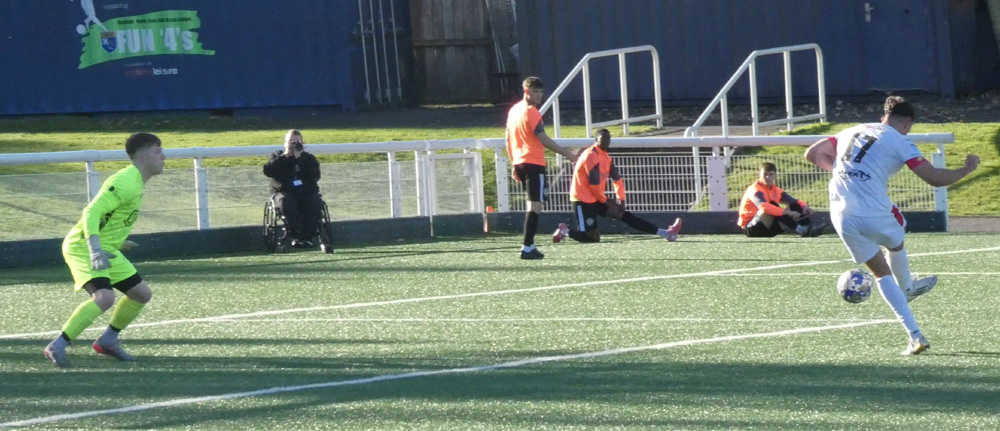 This solidity in defence gave the forwards the platform to produce the goals that would win the game for the Bankies. Keir Samson had a fantastic battle with Arnault Bembo, which I would declare honours even by the end. Samson was always a threat but never quite got the better of the big defender. He really had to earn the glimpses of goal he had, but unfortunately, he wasn’t successful on the day.