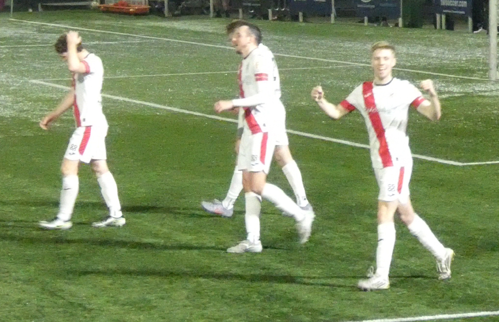 The quality of the goals was one of the most pleasing aspects of the performance. Owen Wardell scored the first and the sixth goals with stunning top-corner strikes, and Neil McLaughlin waltzed his way through the defence to pass the ball into the net for goal number three. In between came Keir Samson’s hat-trick: a delightful first-time shot on his left foot when the ball dropped out of the sky, and two headers, the second of which was the culmination of a fantastic move involving Low and McHugh.