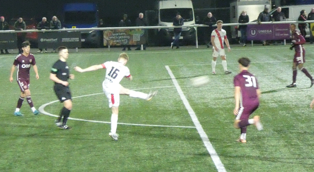 Before we talk about the Bankies performance, it was a chastening experience for the young Hearts B team who were taught a harsh lesson tonight. If any of these young players are to carve out a career in professional football, then this is the type of adversity that should stand them in good stead. One or two of the wee Jambos found it hard to take and Taylor Hogarth’s red card was probably borne out of that frustration.