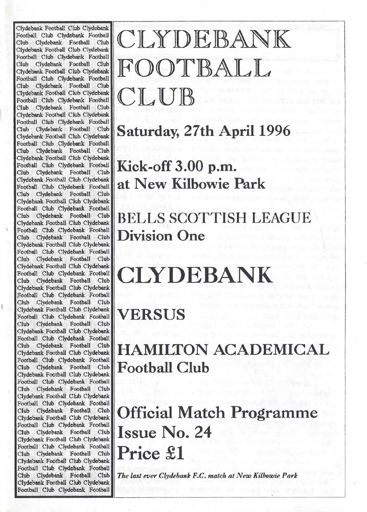 | 27/04/1996 | League (Division 1) | League | (H) | (H) | 1 - 3 |