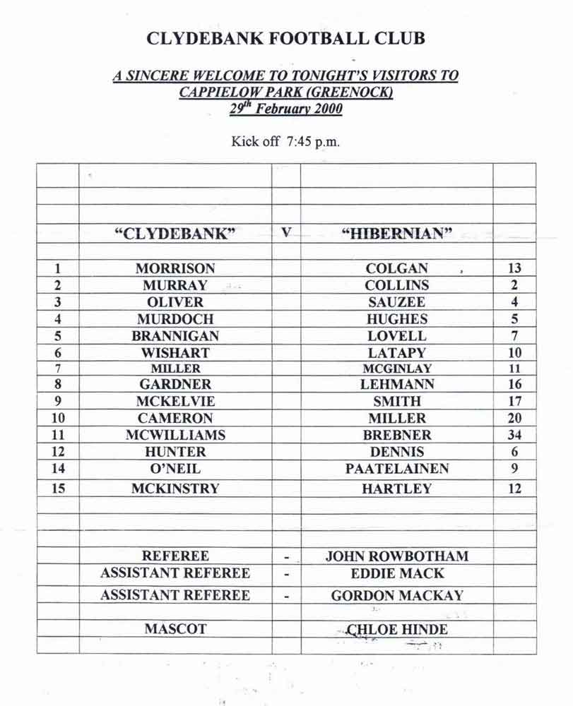 | 29/02/2000 | Scottish Cup (4th Round Replay) | Scottish Cup | (H) | (H) | 0 - 3 |