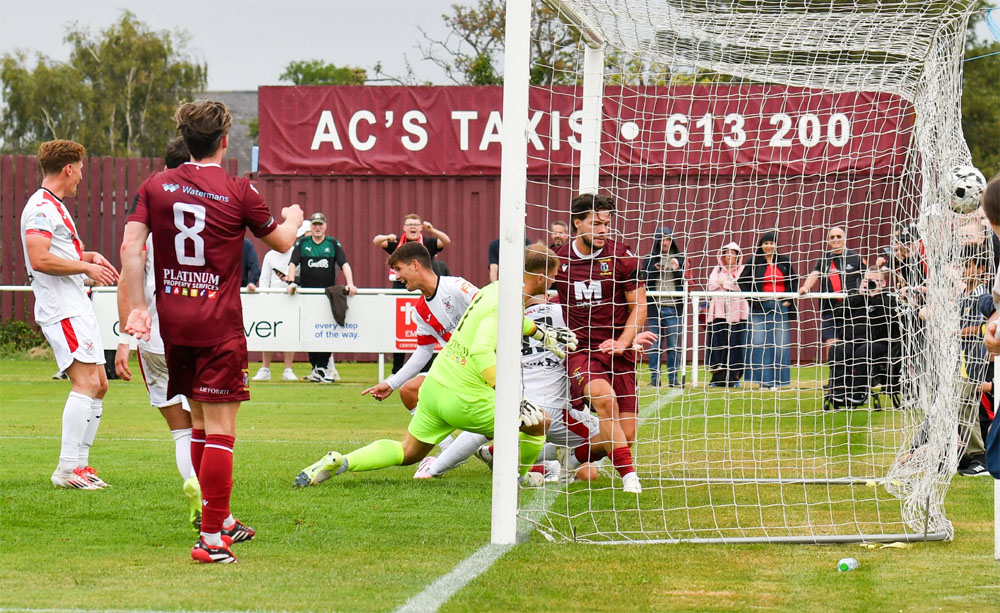 It was Samson who struck first, meeting Nicky Little’s low cross with a deft first-time finish into the near post. The celebrations from the large travelling support set the tone, and moments later the Bankies doubled the lead. A long throw sparked a bout of head tennis in the box before the ball dropped to Aaron Black. In red-hot form, Black needed no second invitation and rifled the ball into the net — his sixth goal in five games.
