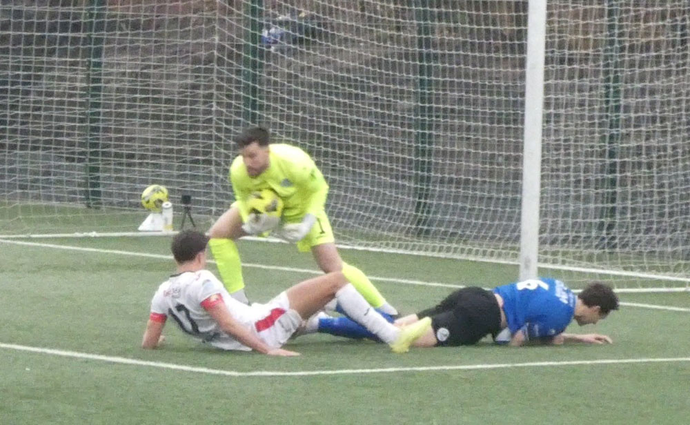 Within the first five minutes he capitalised on a Niven mistake and drove through the Bankies defence, leaving defenders in his wake. The final shot saw Chris McGowan make a superb diving block to divert the ball over the bar. From the resulting corner, Stott made a wonderful save from Hatfield’s bullet header.