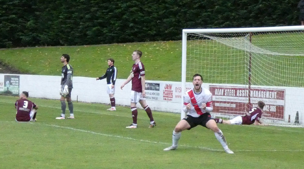 From there it was backs-to-the-wall as Linlithgow pressed forward. Ironically, that pressure led to their own dismissal. Stenhouse, who had little change out of Adam Hodge all afternoon, finally lost patience and his late tackle on Cairns merited a straight red.